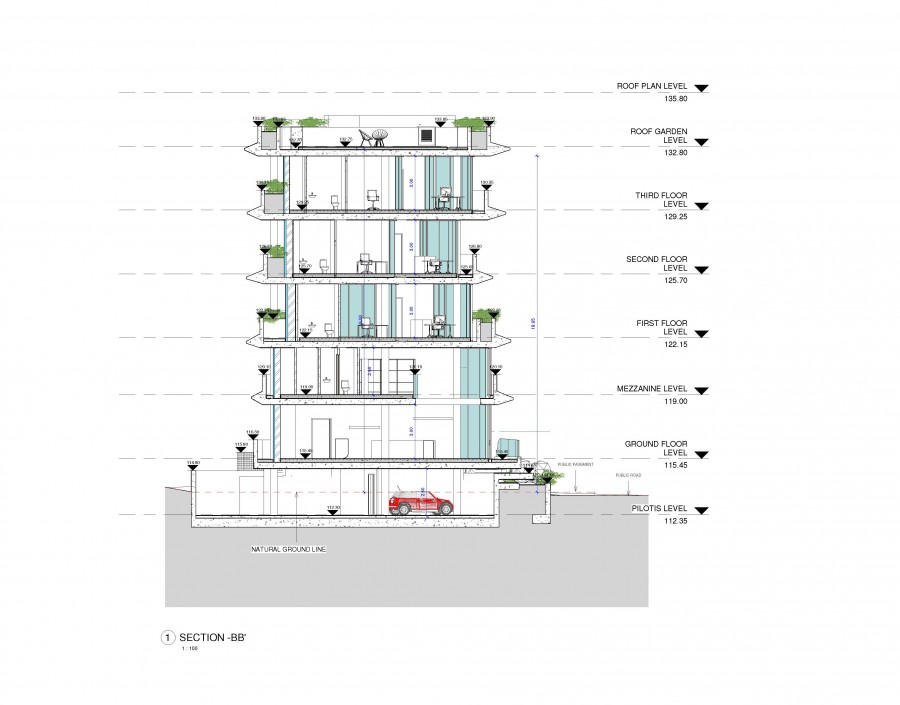 This modern commercial building combines functionality with a touch of architectural flair. Its unique design elements and carefully curated spaces ensure an environment of openness, natural light, and an inviting atmosphere throughout. Additionally, the building features outdoor verandas on select floors, offering stunning views of the surrounding cityscape.