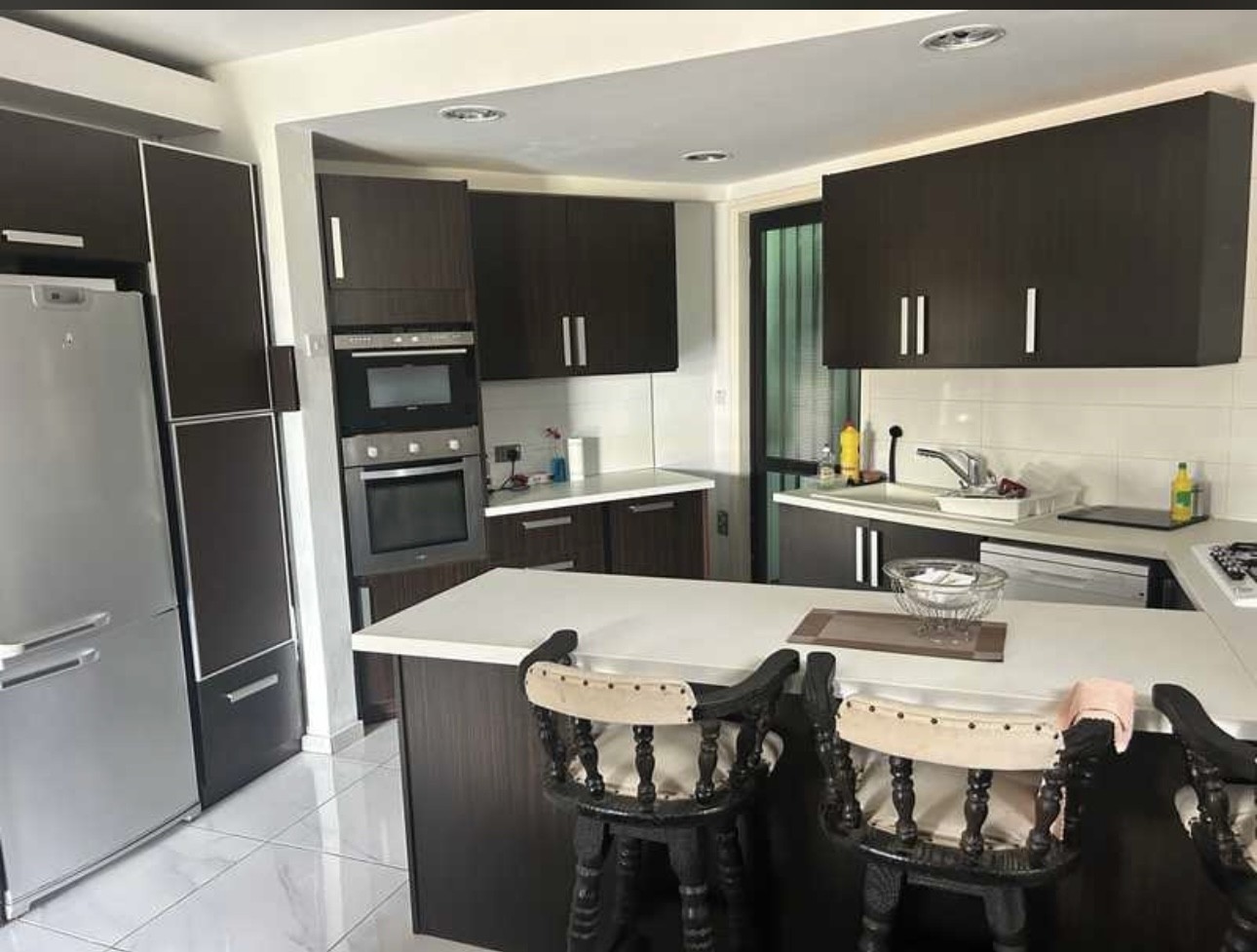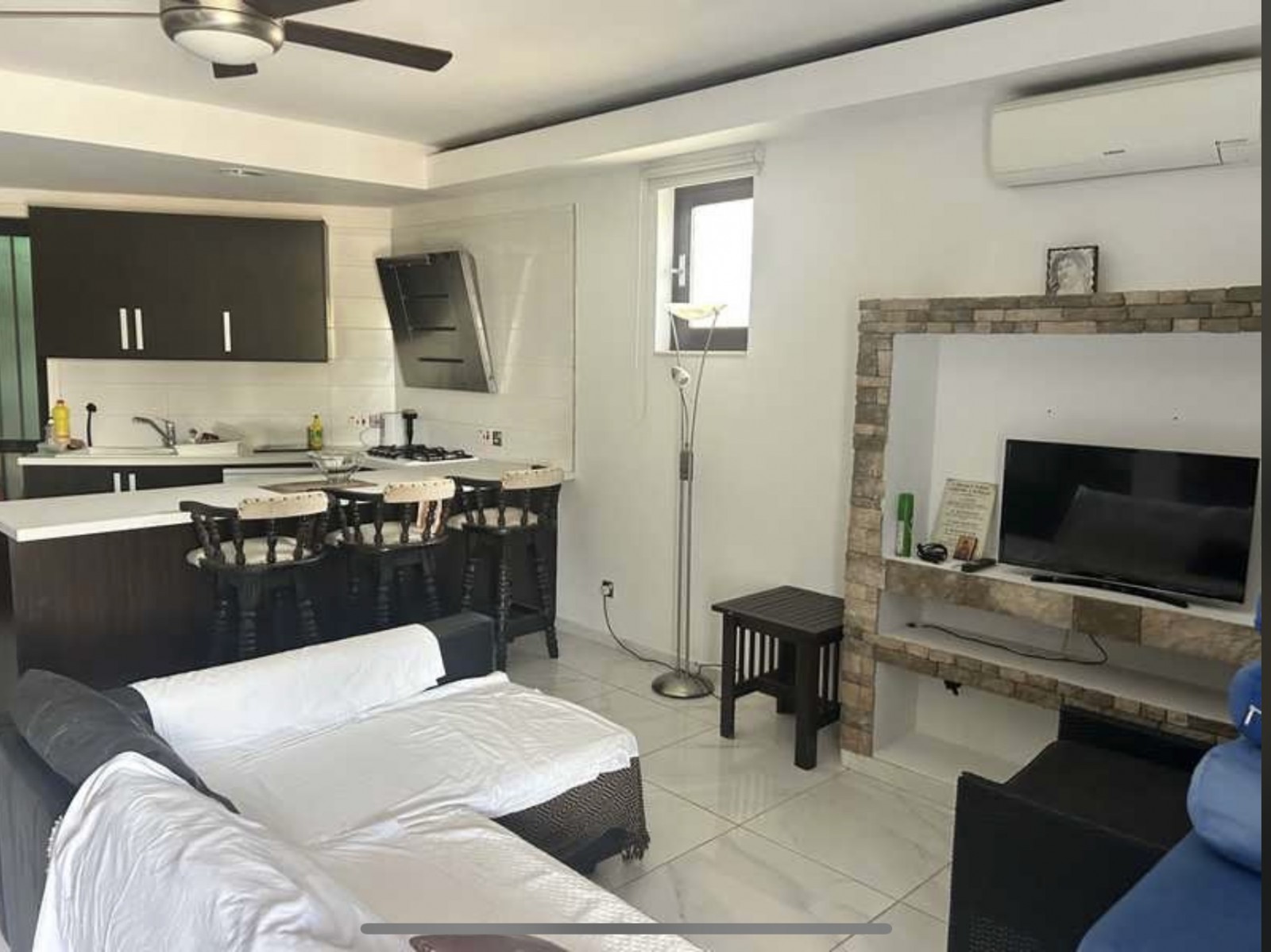 Open plan living and modern fully equipped kitchen with breakfast bar