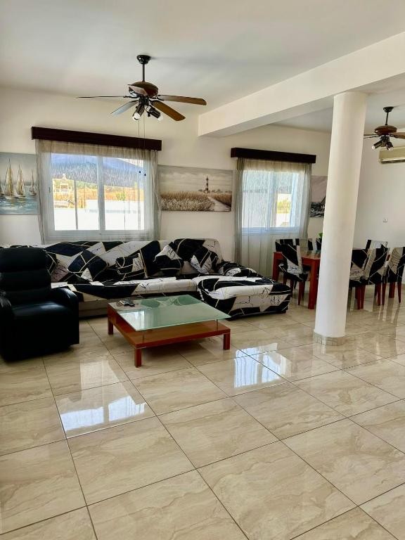 Three bedrooms detached house for rent in Yeroskipou. Consists of open plan kitchen, living/ dining room, 3 bedrooms 3 bathrooms. Private swimming pool, private covered parking. Air conditions at all rooms, photovoltaics. Pets allowed.