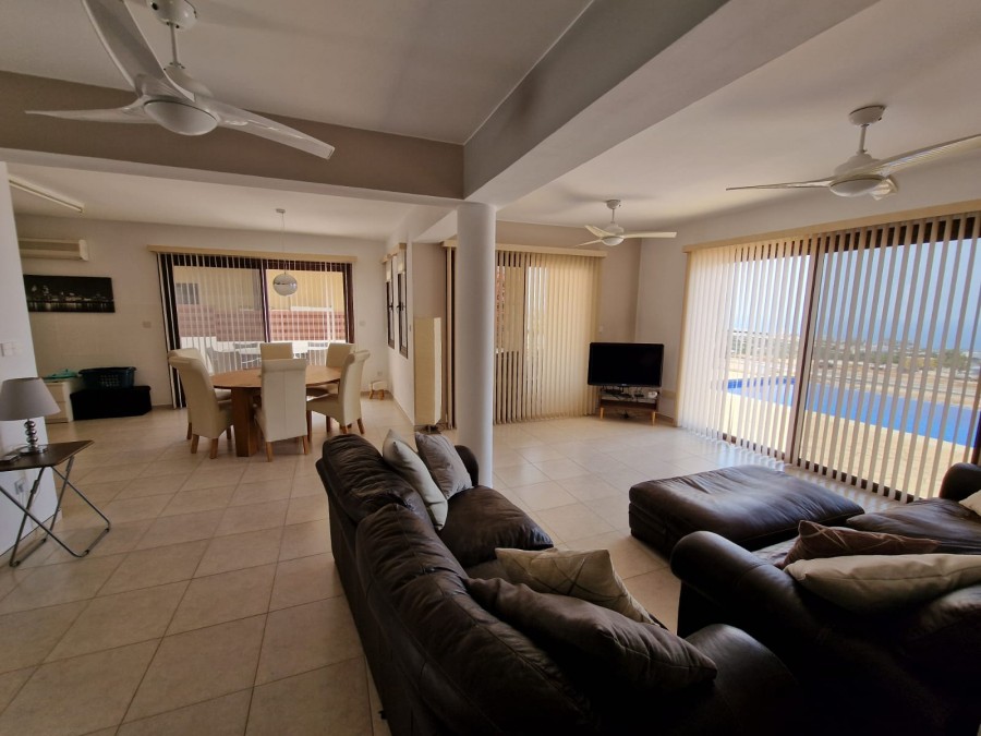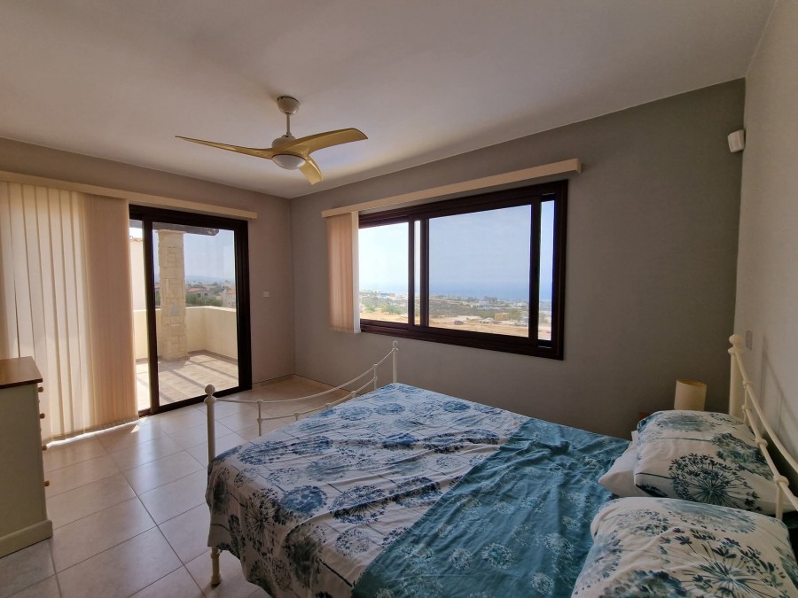 This beautifully maintained three-bedroom villa is located in the serene northwest part of Pegeia, offering stunning panoramic views of the sea and a peaceful environment perfect for family living and relaxation.