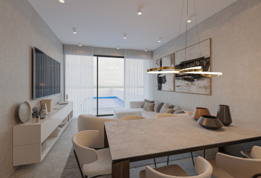 This collection of 15 2-storey houses offers a range of 3 bedroom residences, each boasting 3 bathrooms. The properties feature optional swimming pools, adding a touch of luxury to the serene landscape. The modern architectural approach blends the project seamlessly with the natural environment, creating spacious and efficient interior areas. The location is exceptional, providing unobstructed views of Pafos and the Mediterranean Sea from every single house. The village center is only 2 minutes away, offering convenience without compromising tranquility. Whether you seek an investment opportunity or your private residence, is the ideal choice. Embrace a modern lifestyle that harmoniously integrates with the natural beauty of Cyprus, promising not just a home but an exclusive retreat with breathtaking views and easy access to village amenities.
