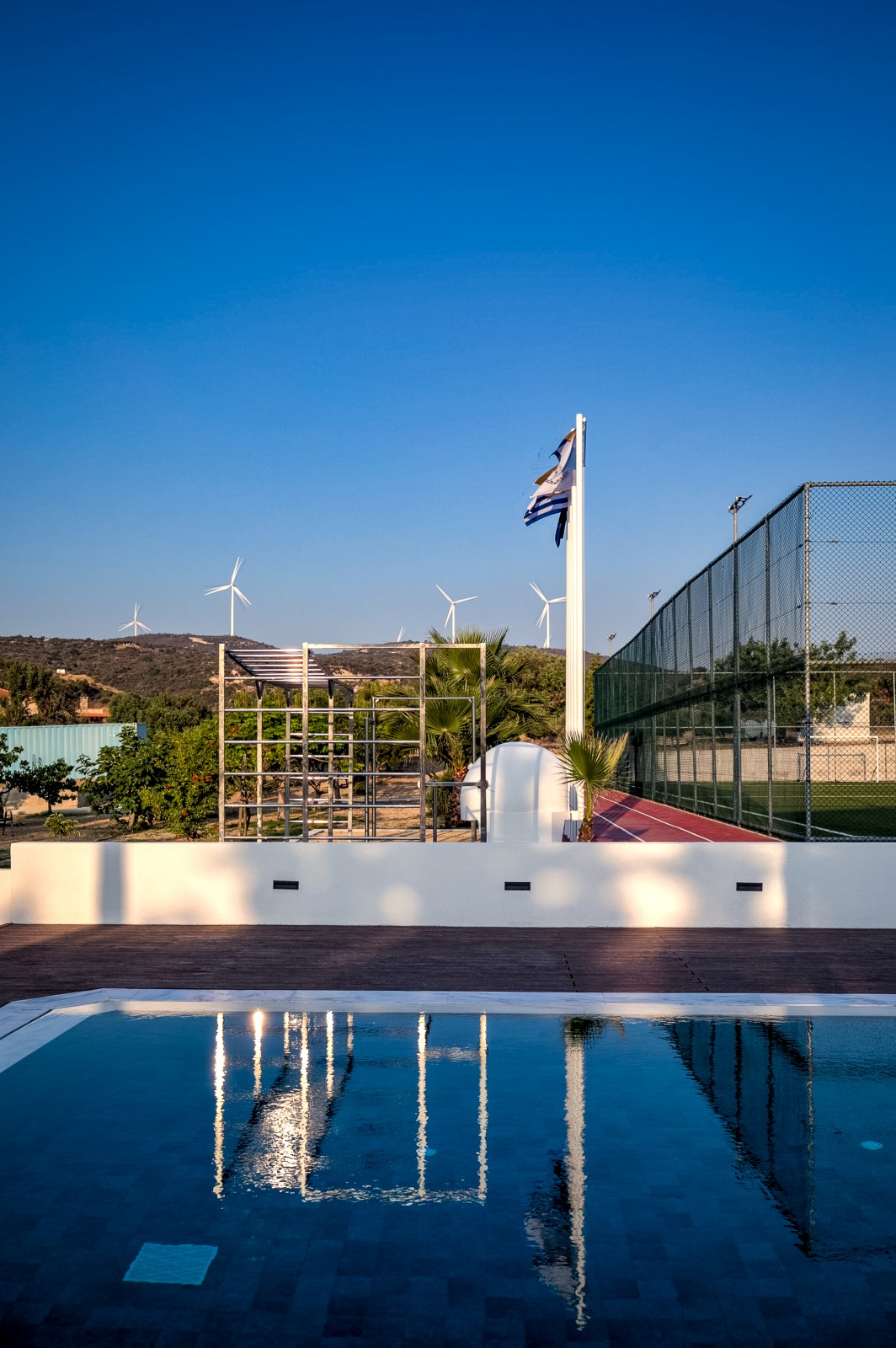 - Swimming Pool: 13m x 6.2m (Area = 80 m²), overflow design with customizable lighting