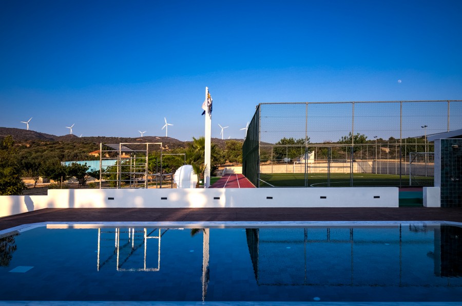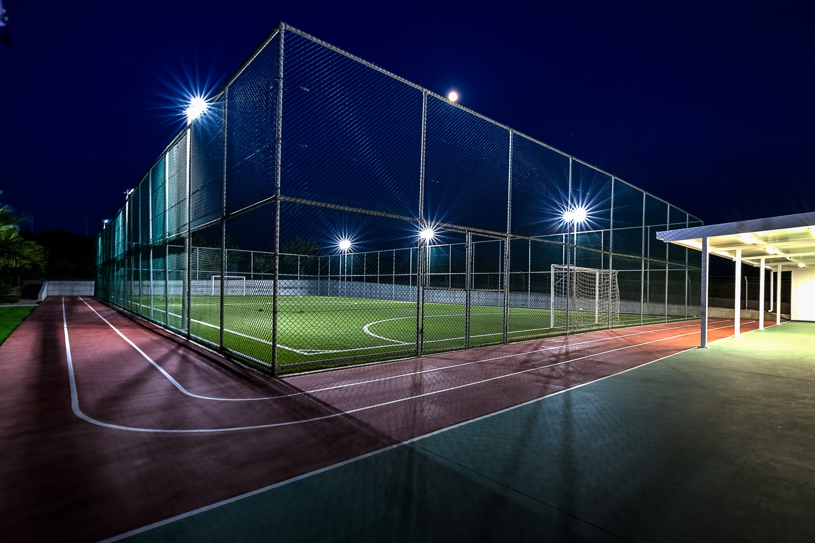 - Private sports and wellness areas (football field, fitness room)