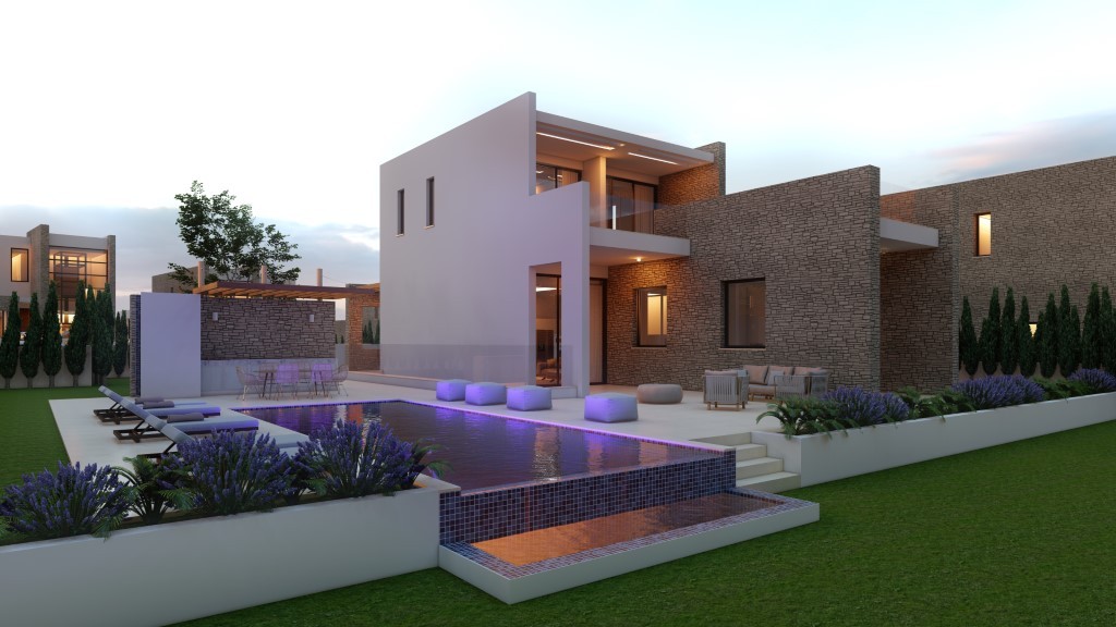 The Sunset View Villas are located in one of the most beautiful parts of the island and offering amazing views of the Mediterranean Sea. The concept of the floor plan design capitalizes on the astounding sea views, and its modern aesthetic honours the natural surrounding elements with the use of generous glazing that allows the natural sunlight into the home. The interior of each villa is organized into two levels.