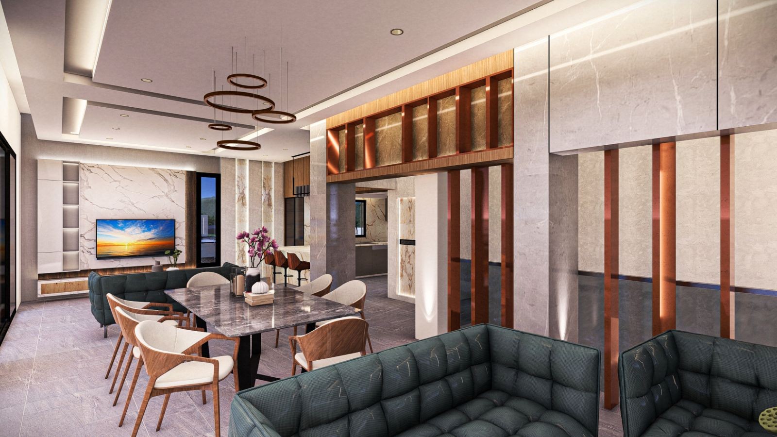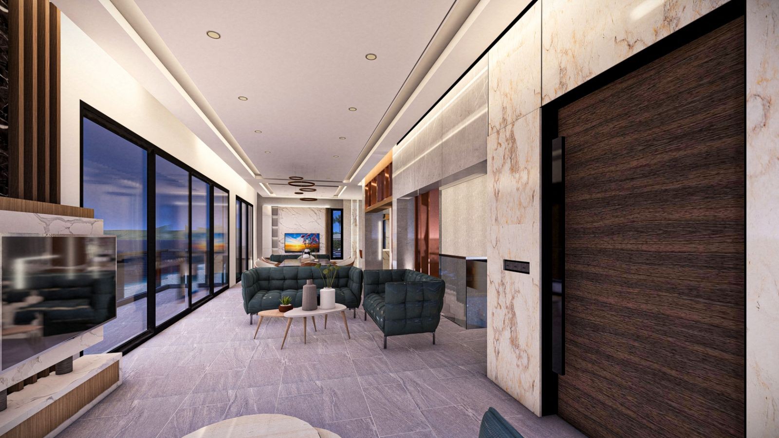 The property features six spacious bedrooms, thoughtfully designed for comfort and elegance, including a luxurious suite and an independent guest house, perfect for family, visitors, or staff. Its contemporary architectural style blends seamlessly with the landscape, giving the home a sense of sophistication and refined design.