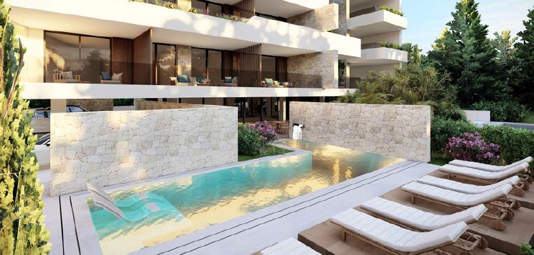 Each residence — whether a studio, one-bedroom, or two-bedroom apartment — has been strategically designed to offer impressive sea views. The complex is sheltered from the noise of the main road, ensuring complete tranquility and privacy within a lush green setting. From the upper floors, breathtaking panoramic views of the sparkling Mediterranean Sea seamlessly blend natural beauty with modern living.