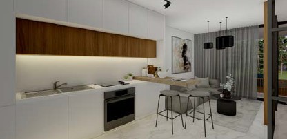 Just 600 meters from Venus Beach. Shared swimming pool. Coworking space. Fully equipped fitness room. Impressive lobby. The complex is ideal for both short-term and long-term rentals.